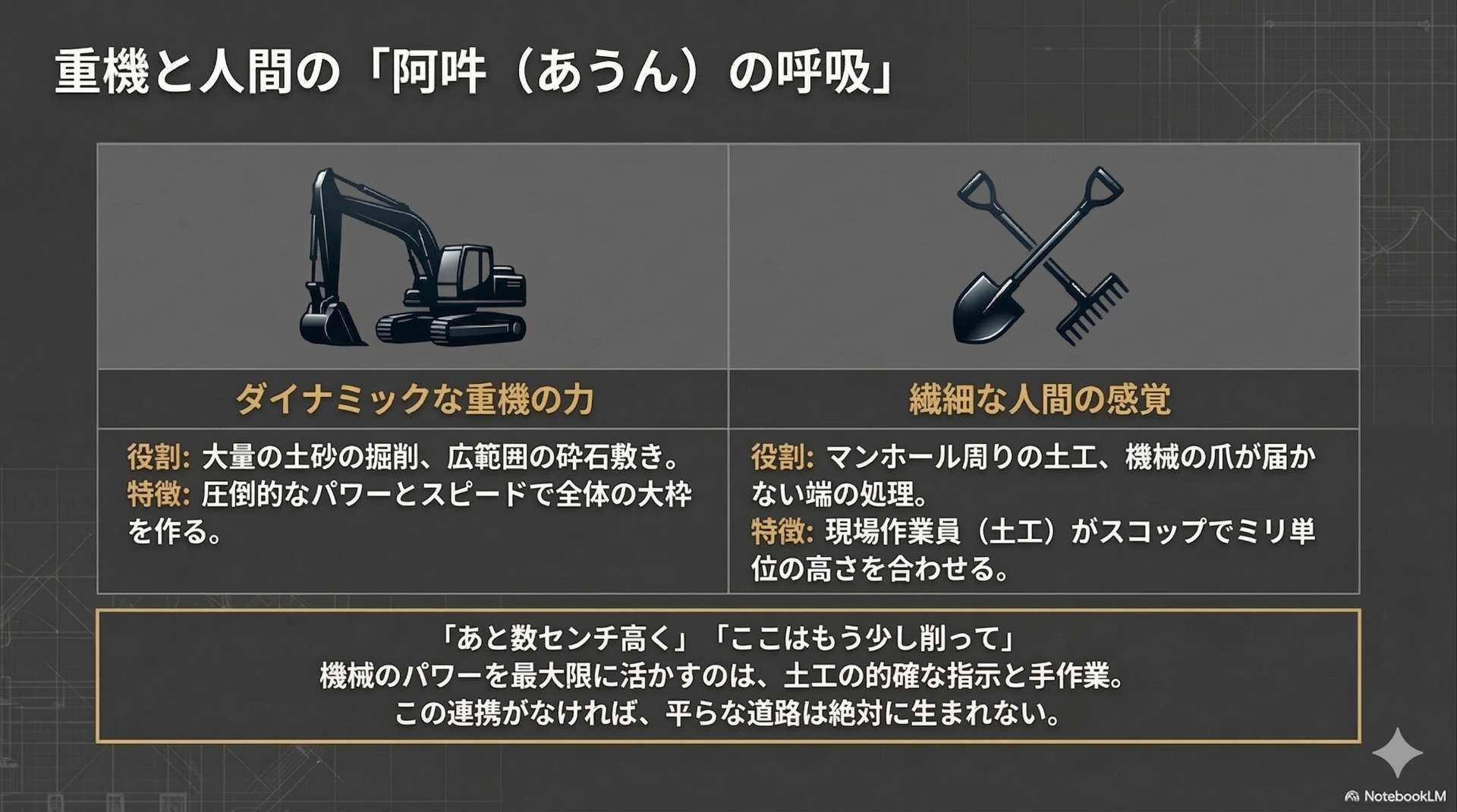 結論から言えば、あの美しく安全な道路は、現場作業員たちの緻密な連携と、手作業による微調整の結晶です。